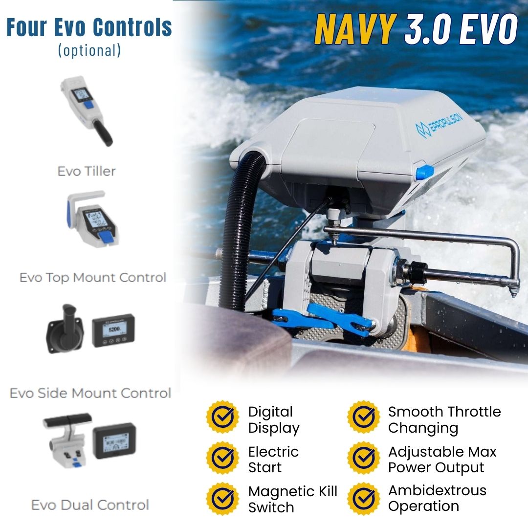 🎚 Flexible Controls – Compatible with ePropulsion’s Evo remote and tiller systems.