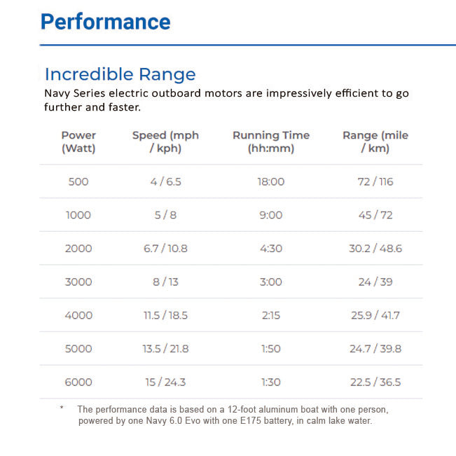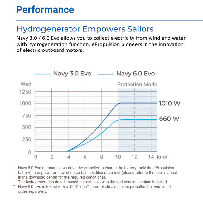 Thanks to advanced direct-drive technology, the Navy 6.0 Evo runs smoothly with exceptionally low noise and vibration—eliminating many of the hassles associated with traditional gas motors. Its hydrogeneration feature recharges your battery while sailing, making it the perfect choice for long-distance trips and sustainable cruising adventures.