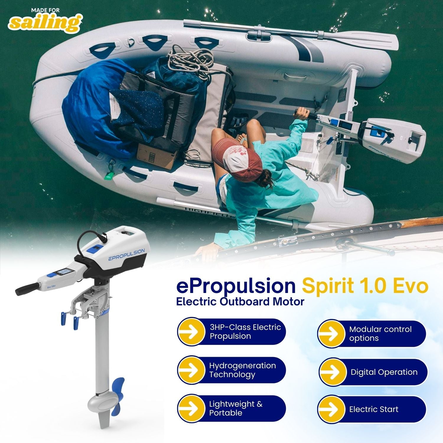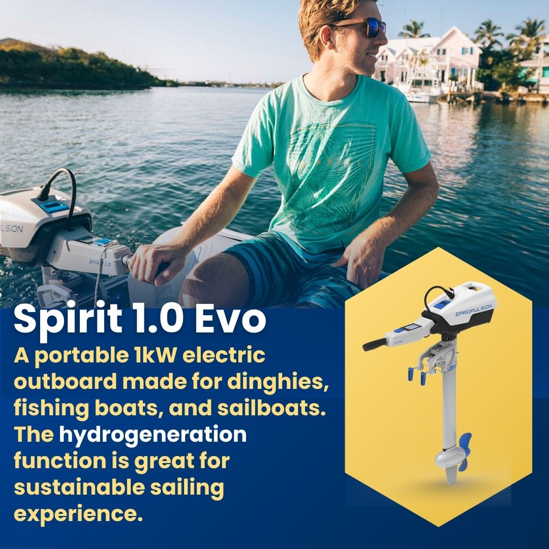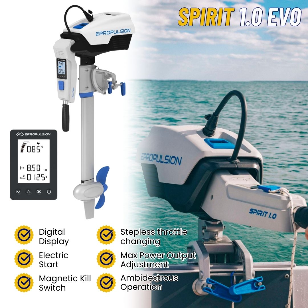 The ePropulsion Spirit 1.0 Evo is a next-generation 3HP electric outboard motor designed for dinghies, fishing boats, tenders, and sailboats. Delivering clean, quiet, and reliable propulsion, it’s the perfect eco-friendly alternative to traditional gas engines. Lightweight and portable, the Spirit 1.0 Evo makes boating easier, safer, and more sustainable.