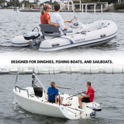 👉 For most small dinghies and aluminum boats under 15ft or 4.5m, extra short shaft or short will work depending on whether the transom height is over 40 cm / 15.7 inches or not.
