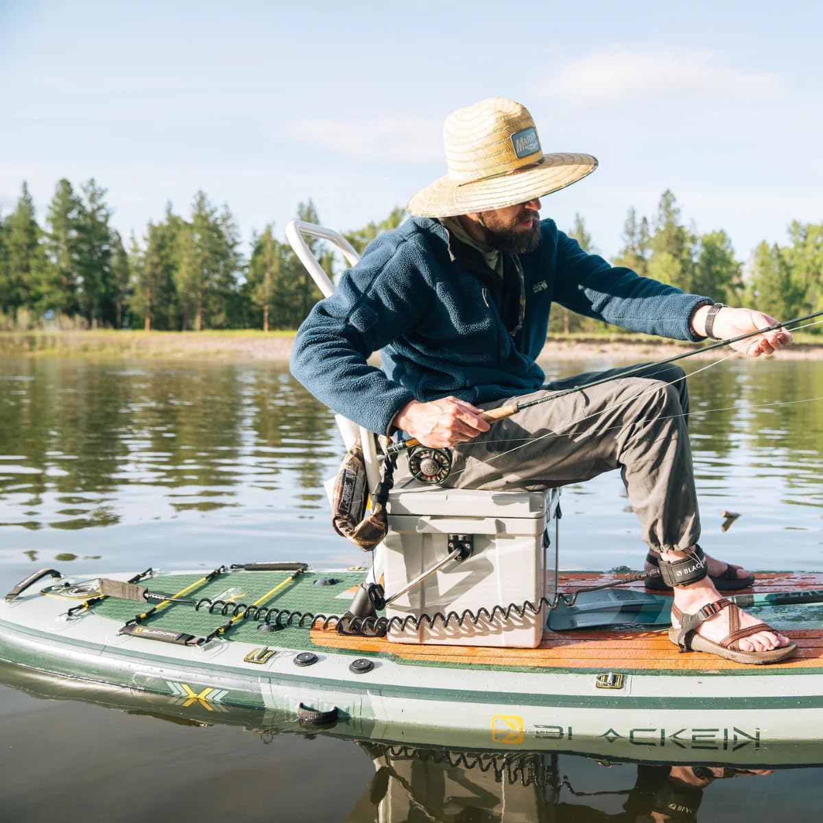 Crafted from military-grade triple-layer PVC with a carbon-embedded rail, this board delivers unmatched rigidity that performs more like a hard board. Inflate quickly with the included 12V electric pump and get on the water in under 12 minutes. With 8 action mounts and 20 D-rings, you can equip your board for fishing, lights, rod holders, coolers, and more.