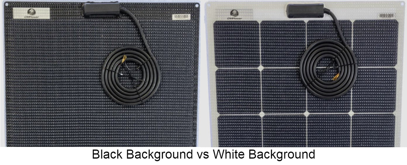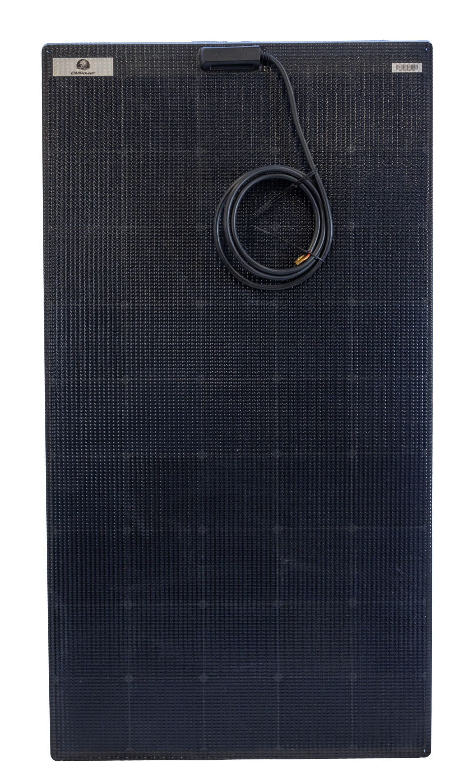 170 Watt Walkable Semi-Rigid Marine Solar Panel - Premium A+ Grade 25.4% Efficient SunPower Solar Cells. This 170 watt semi-rigid monocrystalline solar panel uses the highest efficiency solar cells commercially available SunPower solar cells and will perform extremely well in both full and partial sun. It is built to withstand the harsh marine environment and is ideal for mounting on the rigid surface of a boat or roof of a camper van. It measures 26 x 48 inches and is available in black or white backgrounds. Can withstand walking in high heels. We offer a 'light' version that does better in the heat and has less laminate thus is still walkable though we say maybe not danceable.