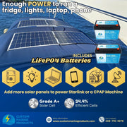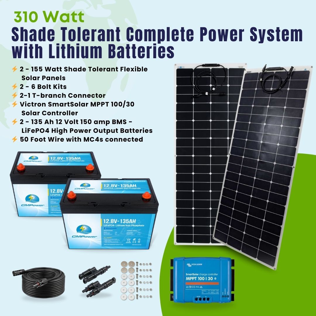 310 Watt Shade Tolerant Complete Power System w/lithium batteries - Sunpower A+ Grade 24.4% Efficient Cells
