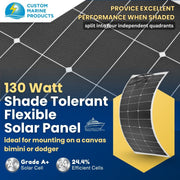 130 Watt Shade Tolerant Flexible Marine Solar Panel - Sunpower A+ Grade 24.4% Efficient Cells