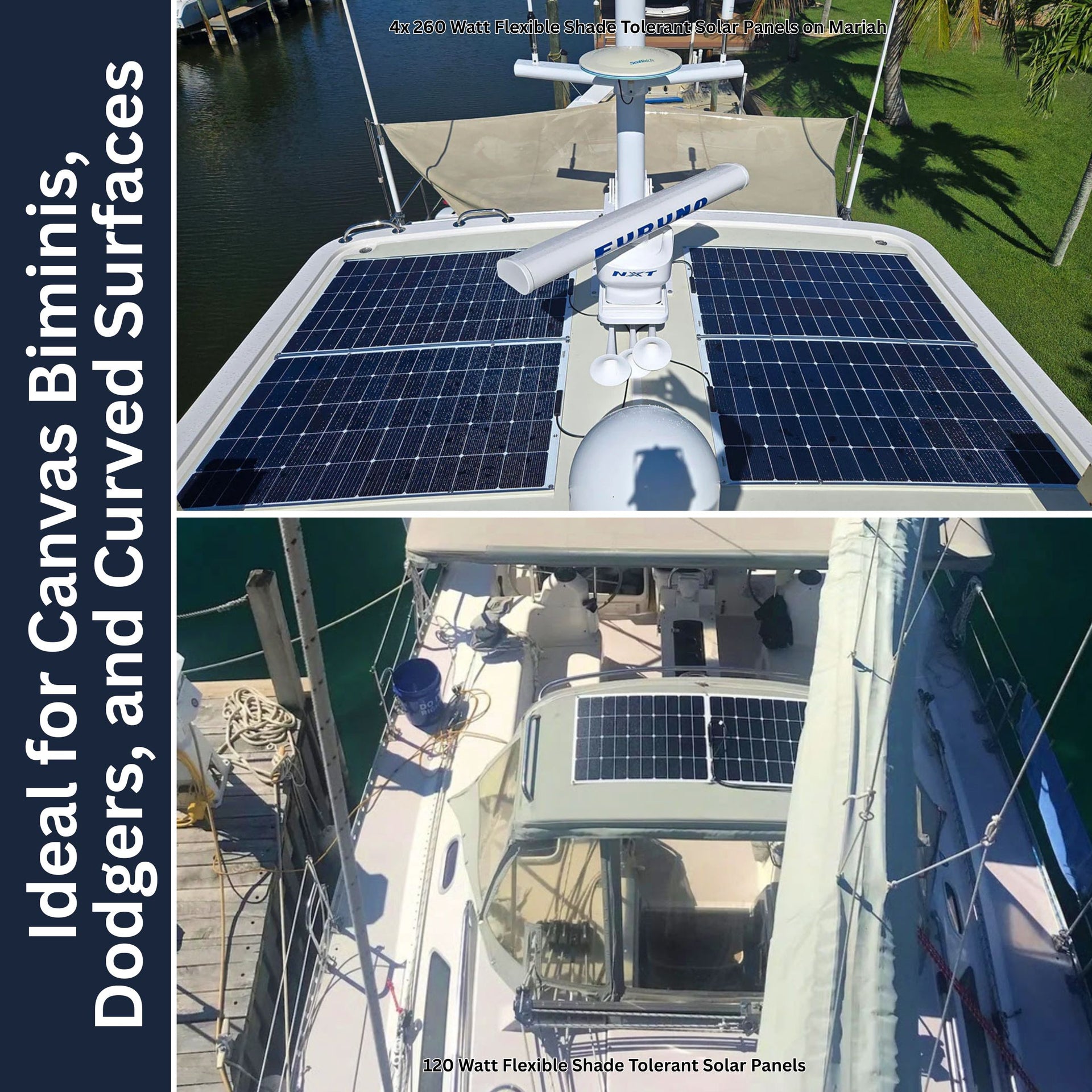 Unlike traditional panels, this innovative design is split into four independent quadrants. If one quadrant is shaded by a boom, mast, or obstruction, the other three continue producing full power — ensuring you never lose energy output due to partial shading. Video on them Here.