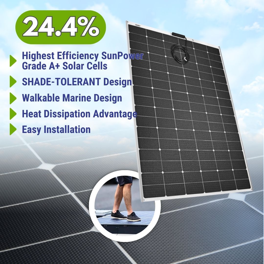 325 Watt Walkable Semi Rigid Shade Tolerant Solar Panel - Sunpower A+ Grade 24.4% Efficient Cells