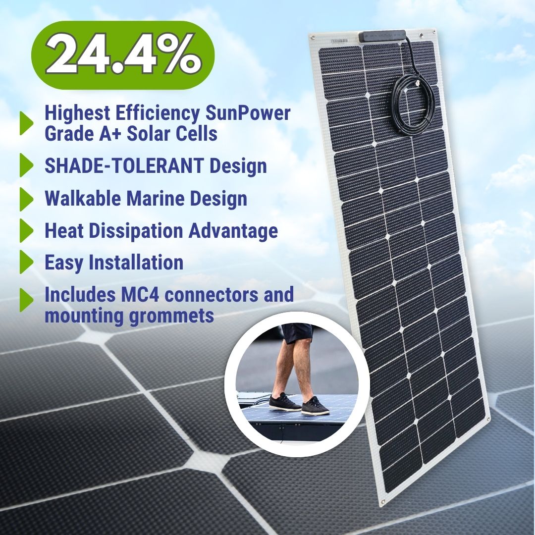 100 Watt Walkable Semi Rigid Shade Tolerant Solar Panel - Sunpower A+ Grade 24.4% Efficient Cells