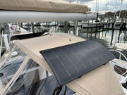 This is a lightweight, rigid solar panel that clamps to railings, biminis and arches without struts or strings. The quick-release cam-lock hardware is simple to install yet provides instant adjustability to maximize solar intake.